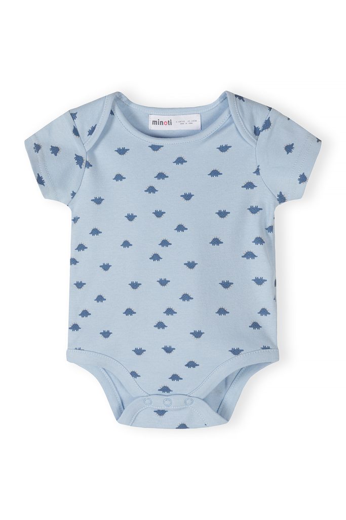 Chlapecká bavlněná body s krátkým rukávem (5 ks) – Modrá, bílá a dinosauři