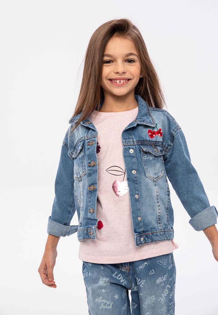 Bunda dívčí džínová, Minoti, cherry 1, Holka