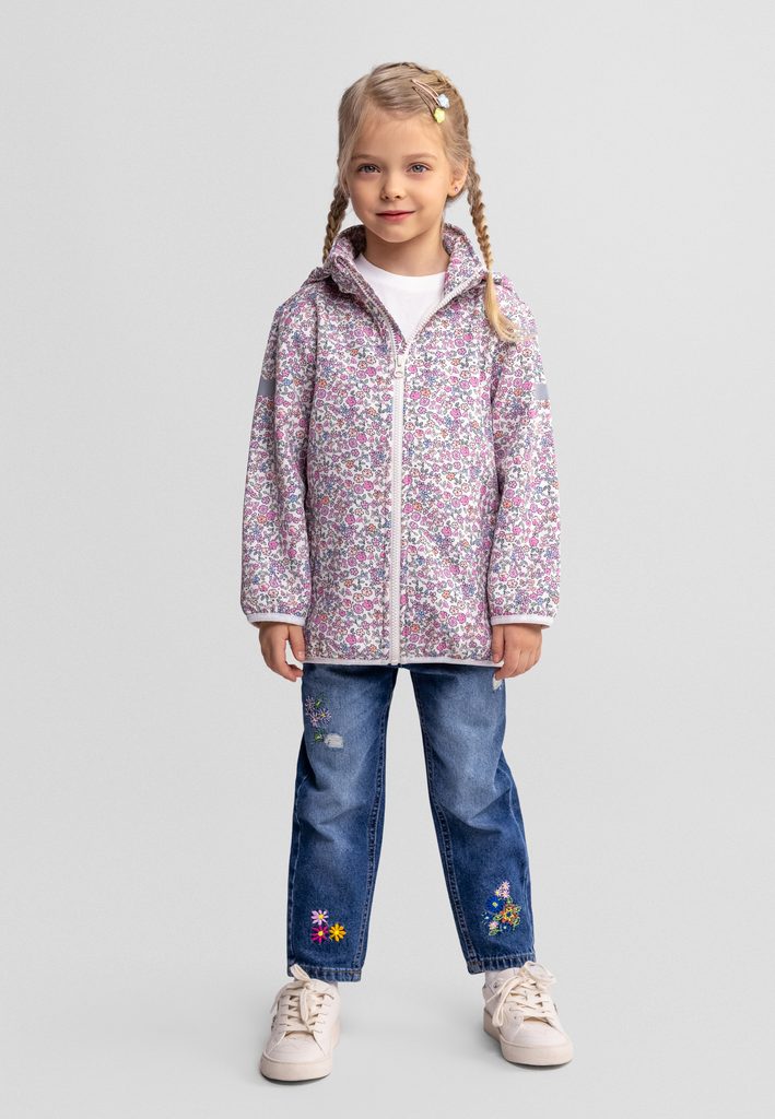 Dívčí softshellová bunda – Smetanová s květinovým potiskem