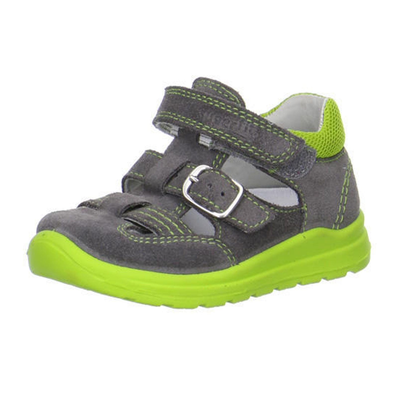 Sandálky s krytou špičkou a zapínáním na suchý zip. Boty mají maximálně ohebnou podešev, kvalitní koženou stélku a opatek, který drží kotník dítěte ve správné poloze.