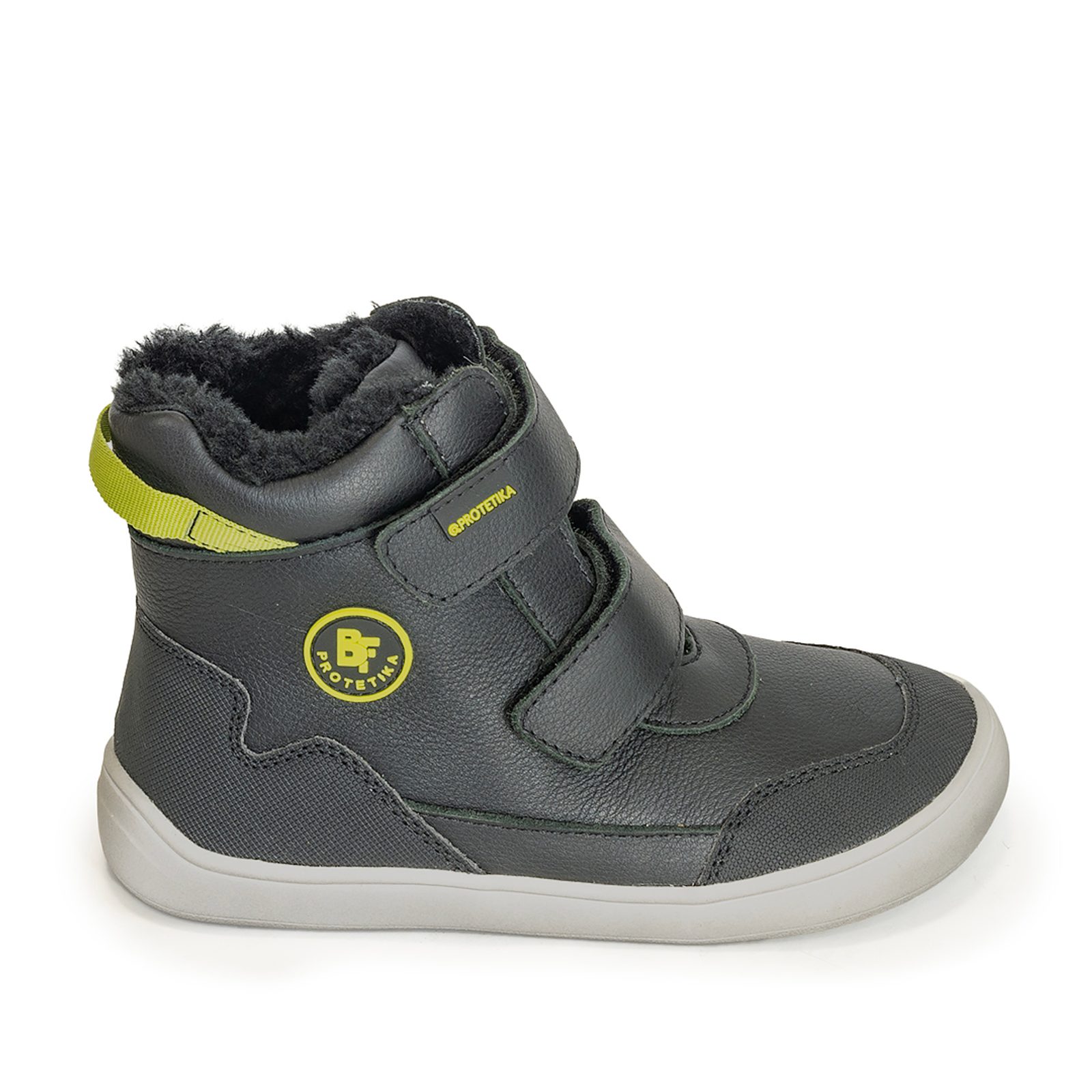 Pohodlné kožené barefoot zimní botky Tarik NERO pro kluky, vhodné pro každodenní nošení, Protetika, černá