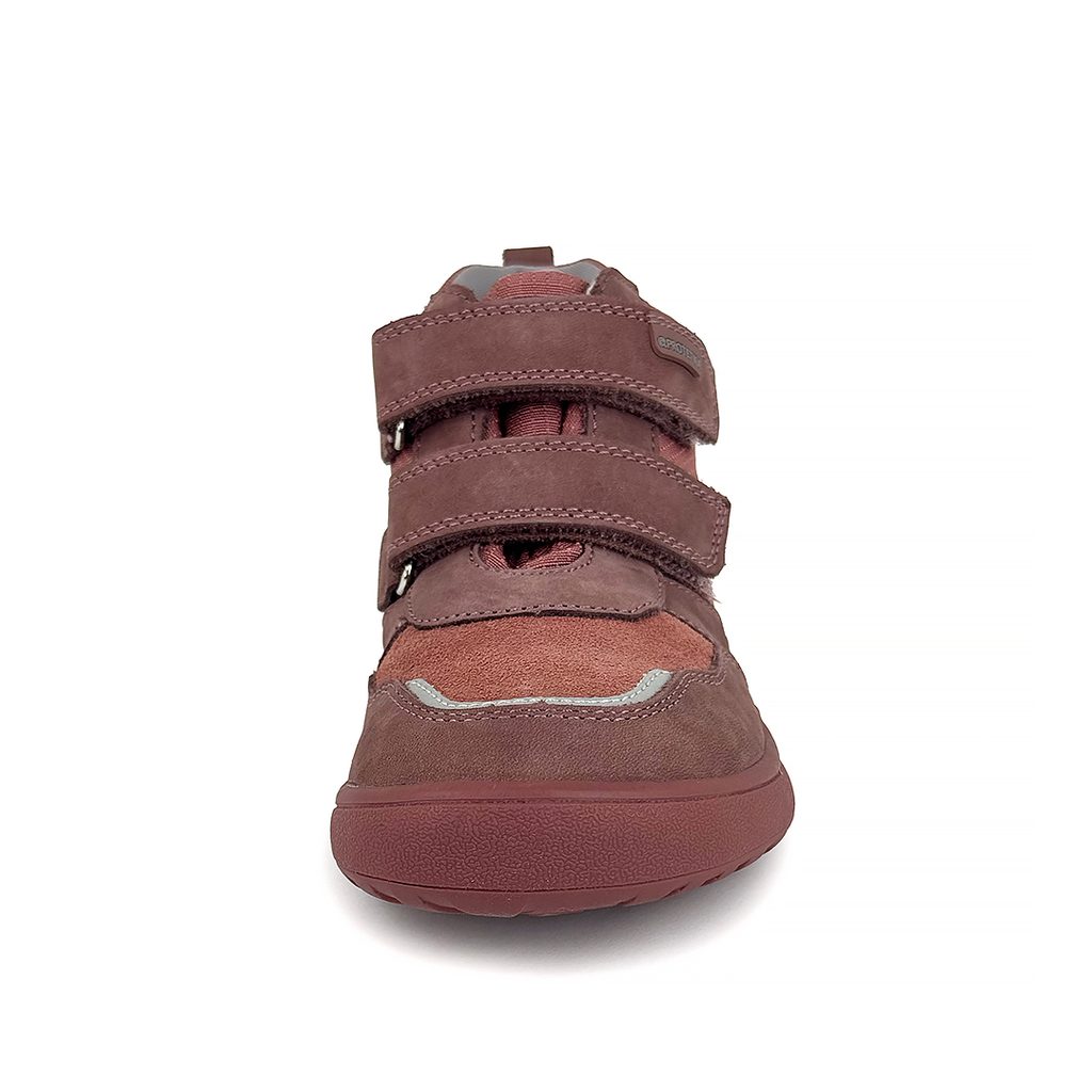 Protetika dívčí barefoot boty s membránou BANET TERAKOTA| celoroční dětská obuv na suchý zip | růžové kotníkové kožené boty bez klenby s flexibilní podrážkou