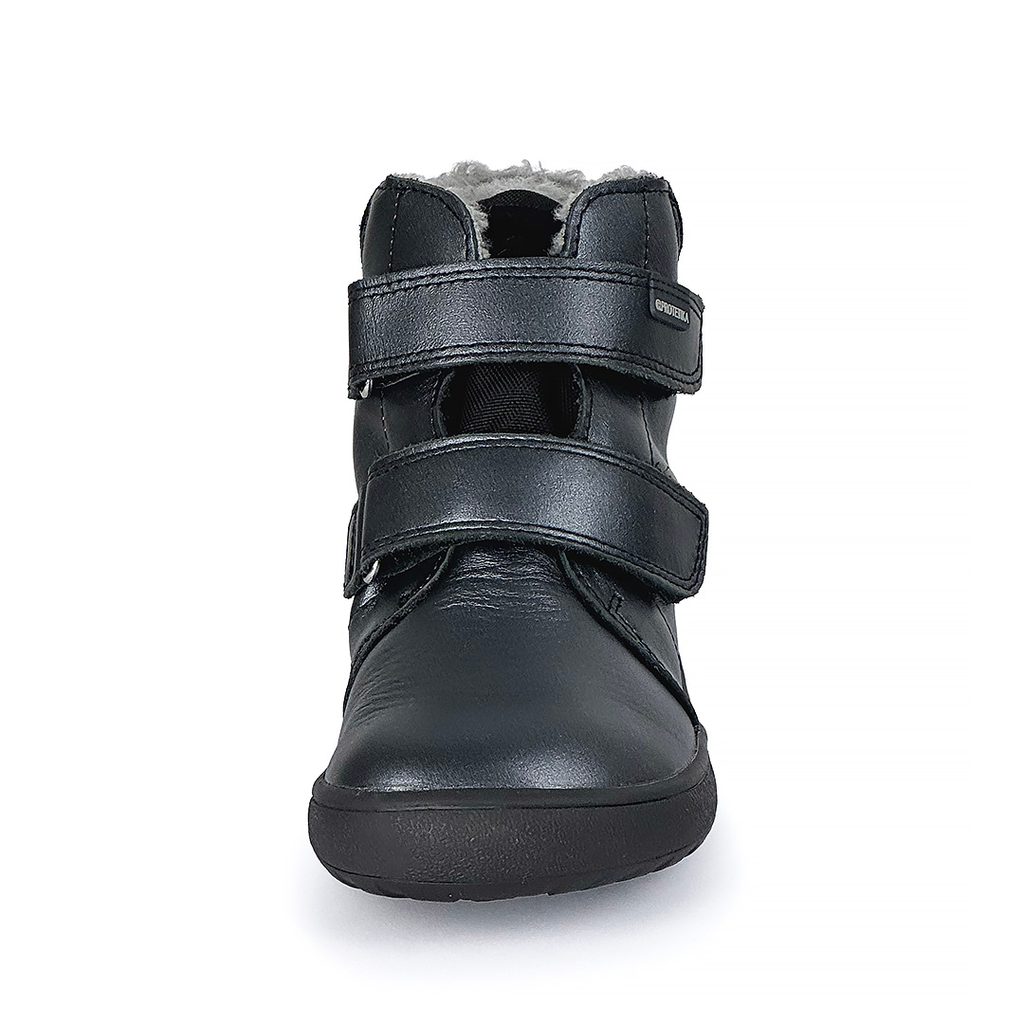 Protetika dívčí zimní barefoot boty BEKA BLACK | zimní obuv na suchý zip s membránou PRO-tex | černá kotníková obuv s flexibilní podrážkou