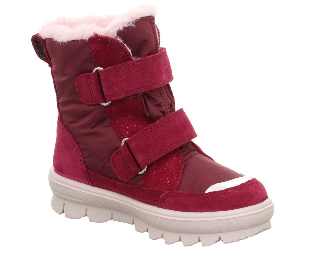 Dívčí zimní boty FLAVIA Red/Silver s membránou Gore-Tex, Superfit , 1-000216-5000, v červeno-stříbrné barevné kombinaci.