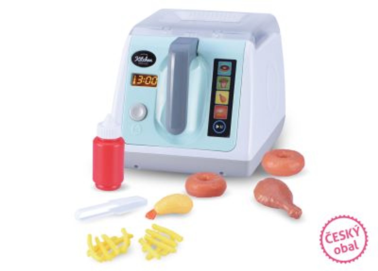 Fritéza při smažení svítí a vydává zvuky jako opravdová a nechybí ani časovač! Tak dobrou chuť!