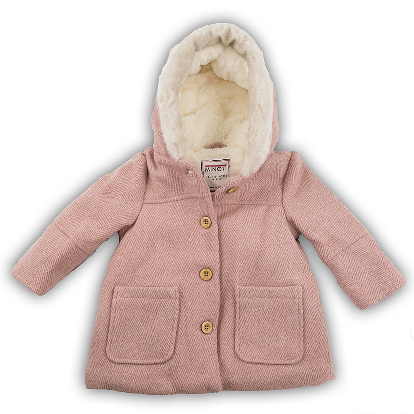 Kabát dívčí vlněný s kapucí, Minoti, Lovely 4, růžová