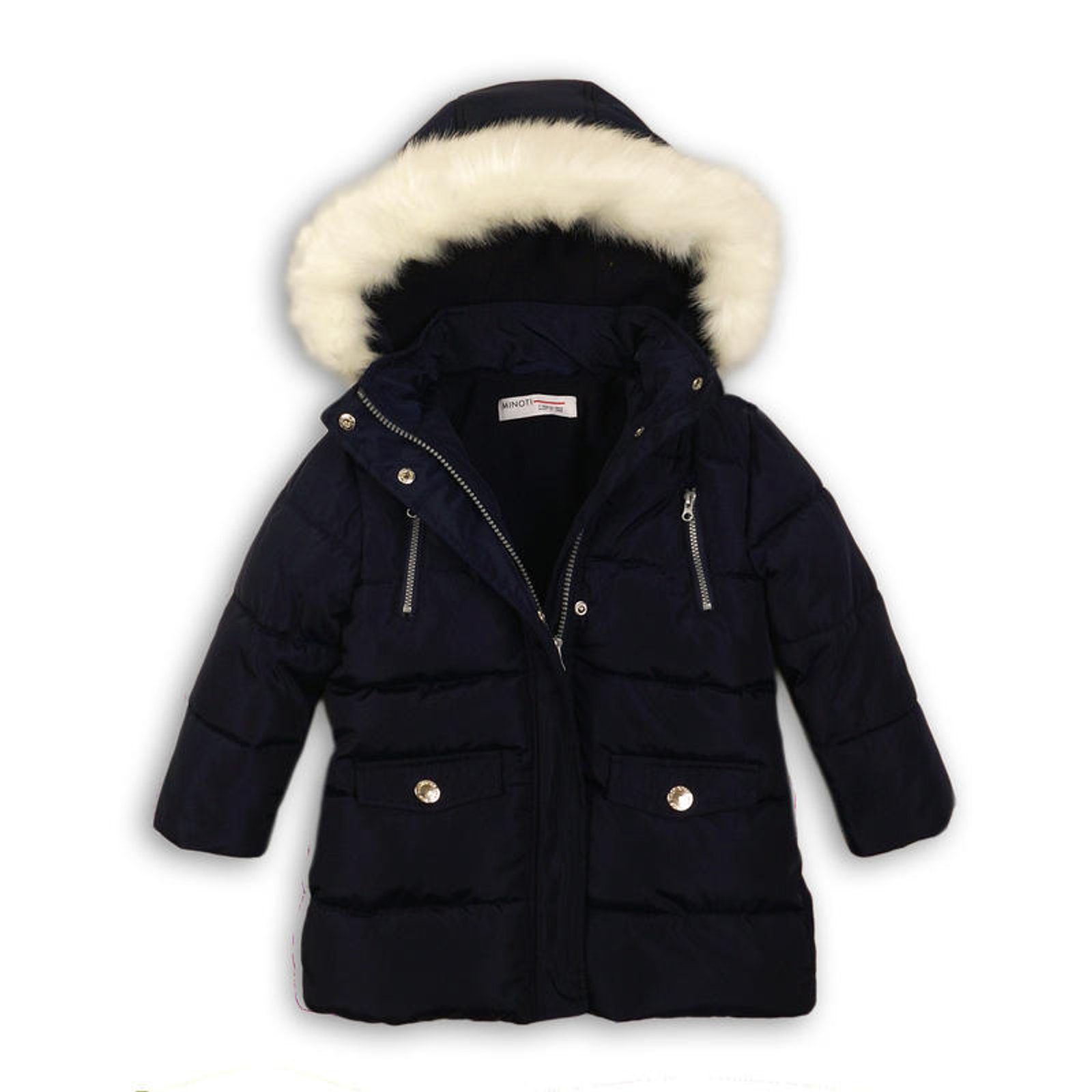 Kabát dívčí zimní Parka podšitá chlupem, Minoti, RUN 4, tmavě modrá