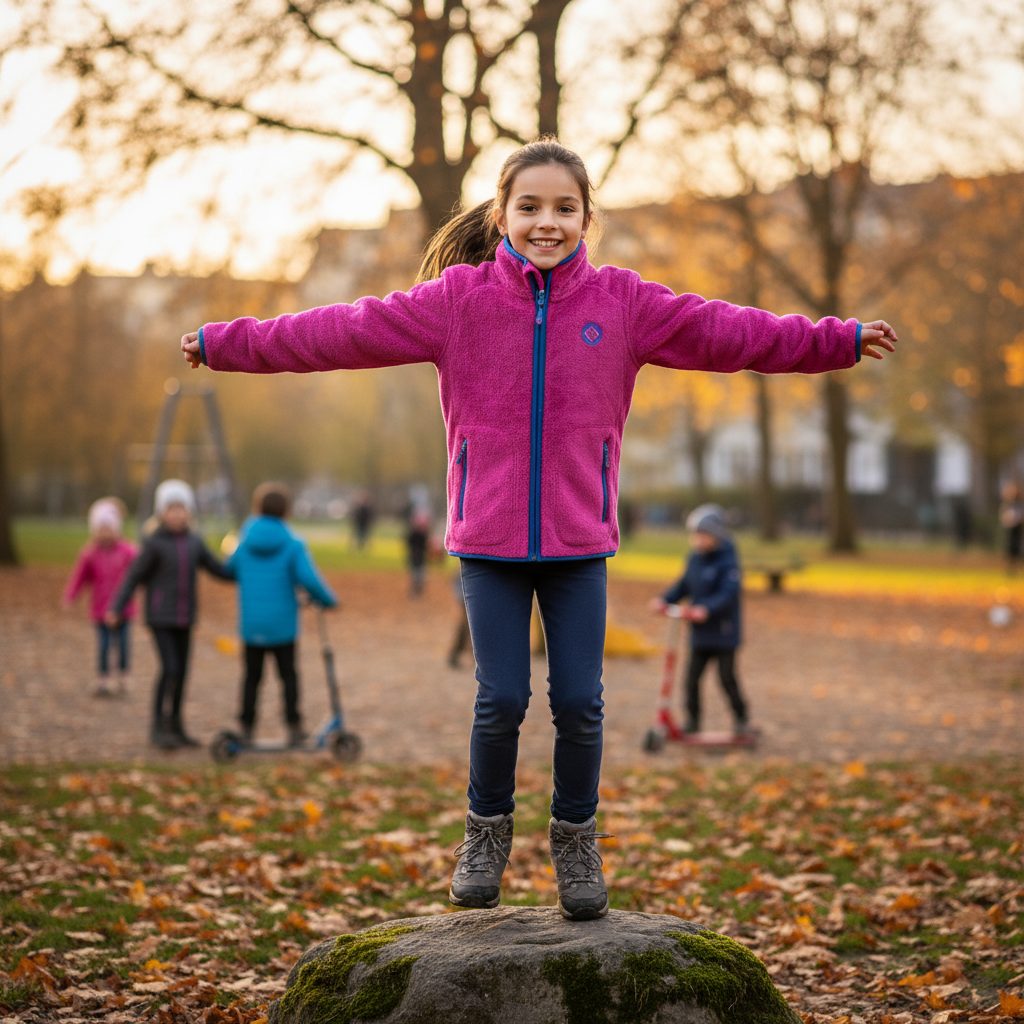 Stylová a pohodlná dívčí mikina, která je ideální pro chladnější dny. Díky chlupatému CORAL fleece materiálu je mikina nejen měkká, ale také příjemně hřejivá. Praktický stojací límec chrání krk před větrem a dvě kapsy poskytují prostor pro malé předměty. Barevné kontrastní lemy dodávají mikině moderní vzhled, který zaujme každého.