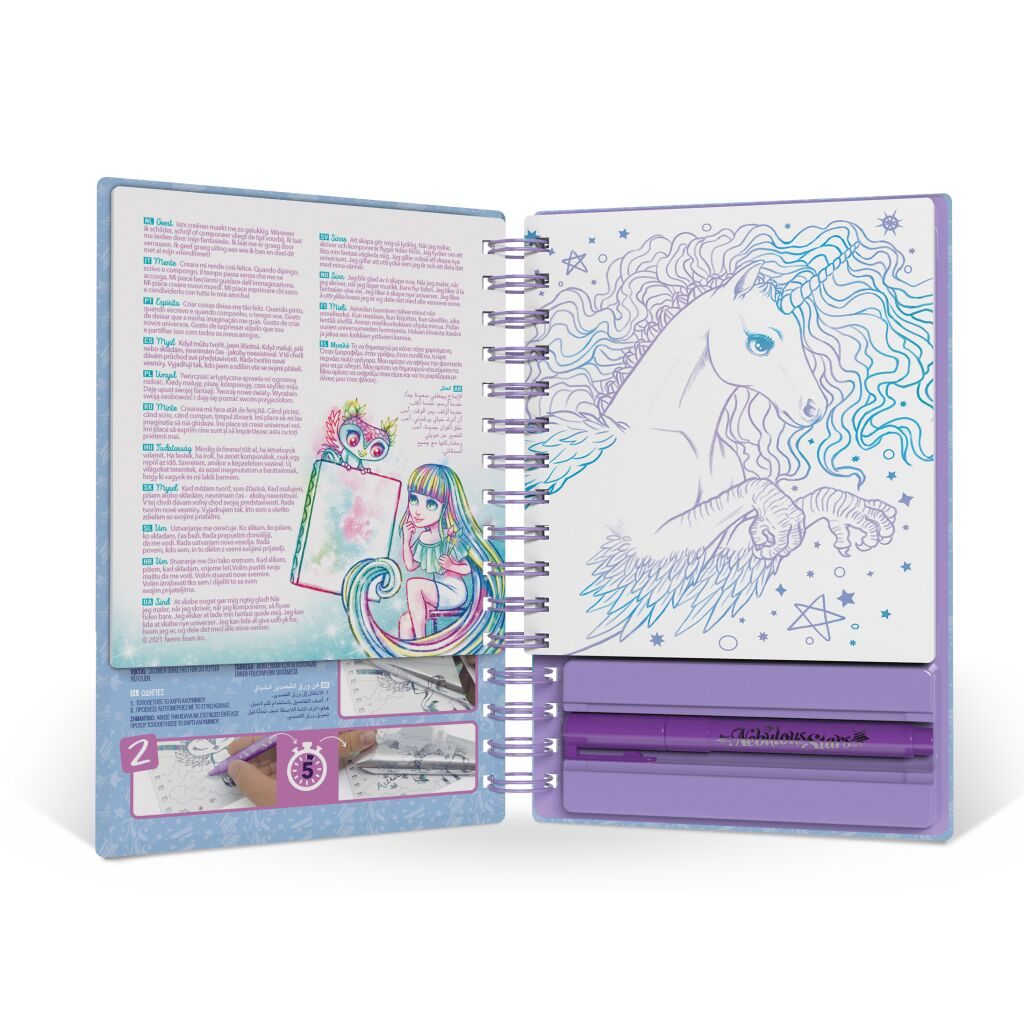 Nebulous Stars Fantasy tvoření pomocí fólie. 12 kreativních obrázků, 12 listů fóliového papíru, fóliové lepicí pero, pokyny, příběh Isadory.