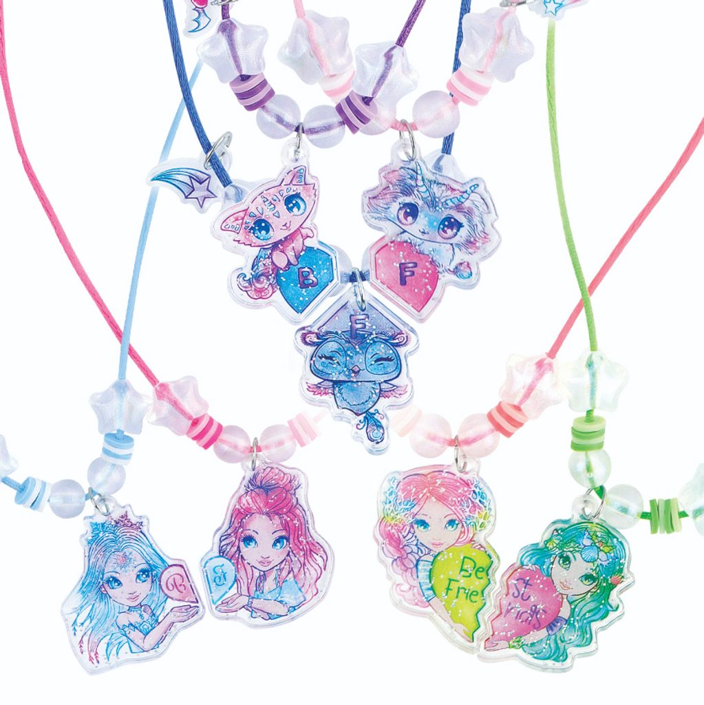 Vytvořte si vlastní náhrdelníky přátelství a darujte je svým nejbližším! Kreativní set Nebulous Stars obsahuje vše potřebné k výrobě originálních šperků plných barev a třpytu. Díky jednoduchému návodu zvládnou tvoření i začátečníci a výsledkem budou krásné doplňky, které potěší jako dárek nebo společná vzpomínka.