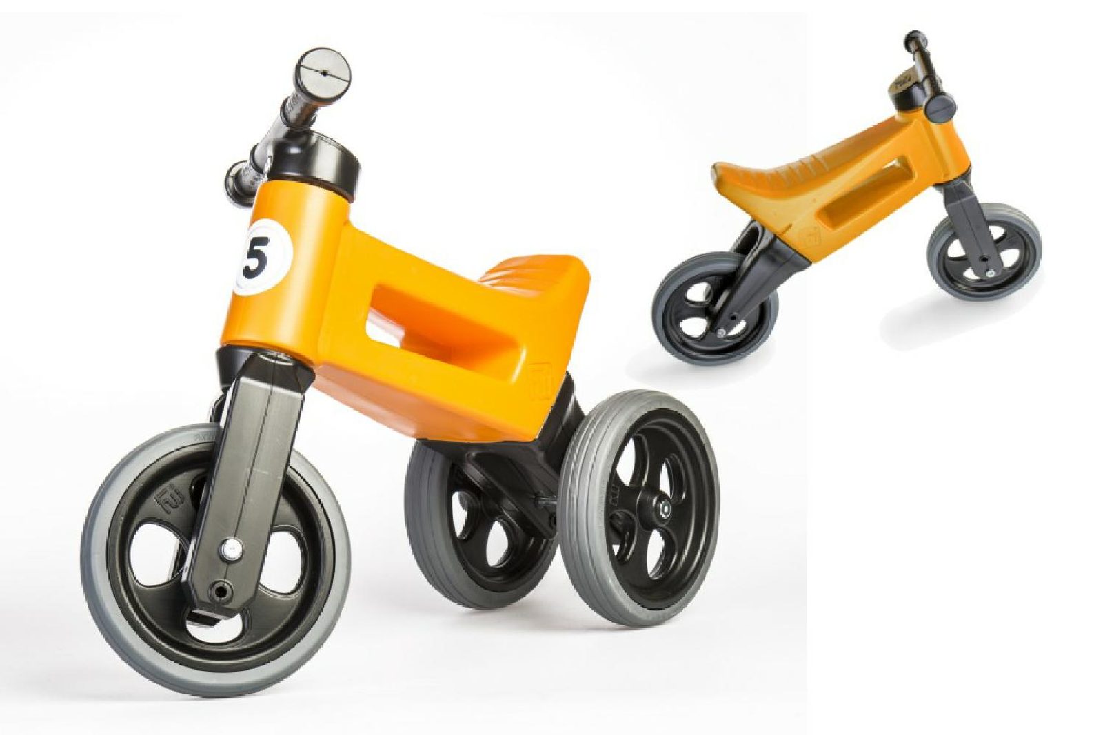 FUNNY WHEELS roste stejně jako váš prcek - začne jezdit na malém tříkolovém odrážedle, až se vytáhne jednoduše FUNNY WHEELS zvednete a jede se dál. Až přijde čas trénovat balanc vyměníte dvě zadní kolečka za jedno a dítko se může začít připravovat na jízdu na kole.