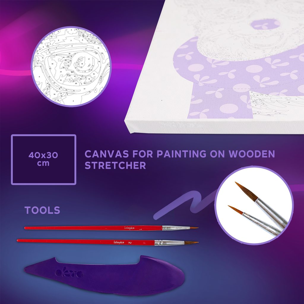 Na plátně: Kvalitní podklad o rozměru 30x40 cm pro pohodlnou tvorbu.
