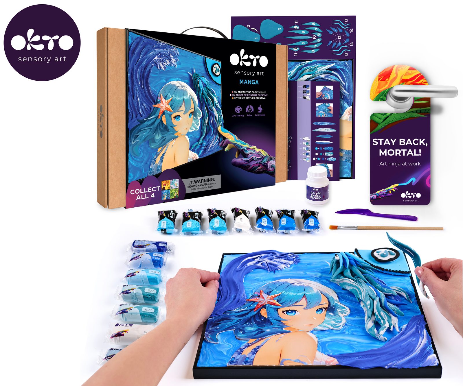 Tato umělecká sada je navržena pro všechny fanoušky anime a mangy, kteří chtějí svou vášeň přenést do prostoru. Proces tvorby začíná na kvalitním plátně, kde pomocí speciální modelovací hmoty a tvarovacího nástroje vytváříte plastické linie a vlny typické pro japonský výtvarný styl.
