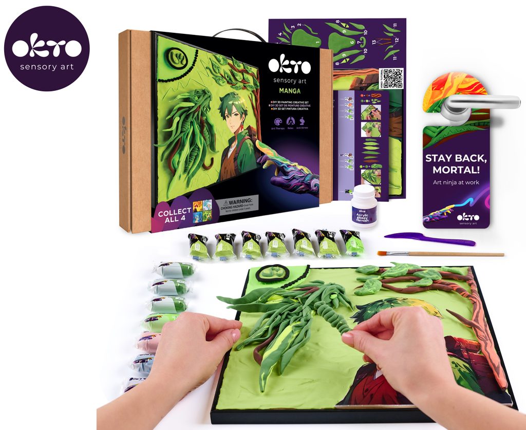 Tato umělecká sada je navržena pro ty, kteří hledají v tvoření rovnováhu a řád. Proces začíná na kvalitním plátně, kde pomocí modelovací hmoty vytváříte pevné linie, skalnaté výčnělky nebo motivy flóry typické pro Manga ilustrace.