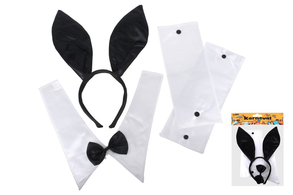Obsahuje čelenka uši, motýlek na krk s límcem, manžety na ruce.