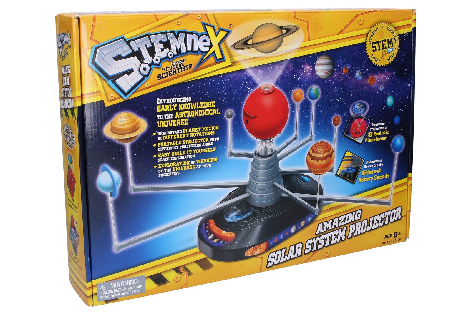 Vložte 2 AA baterie do Slunce (baterie nejsou součástí balení) a poté nainstalujte spodní část Slunce. Pořadí os od krátké do dlouhé, nejkratší osy nejblíže ke slunci. Chcete-li zahájit projekci 8 planet, zapněte tlačítko ON na Slunci, můžete upravit úhel projekce (Projekce na zeď nebo strop) a zaostřit pomocí prstů.8 umístění planet podle vlastních preferencí.