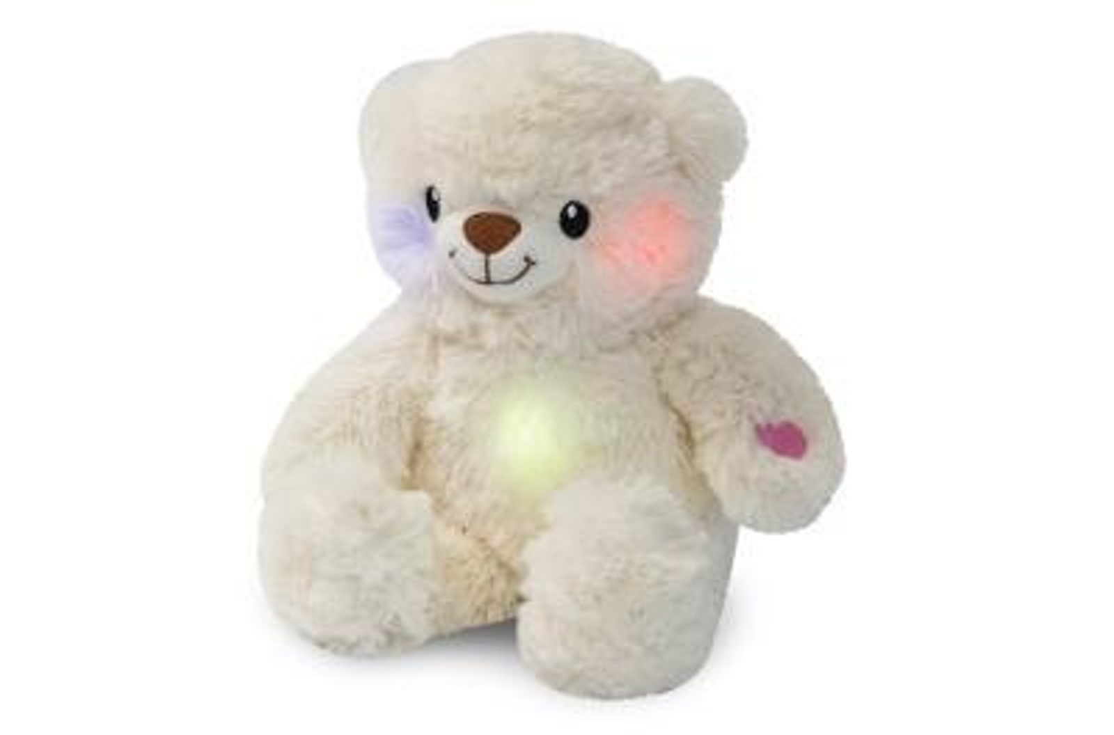 Zmáčkněte medvídkovi tlapku se srdíčkem a uslyšíte uklidňující melodie. Zároveň pozorujte jak se na několika částech rozsvítí malými světélky.