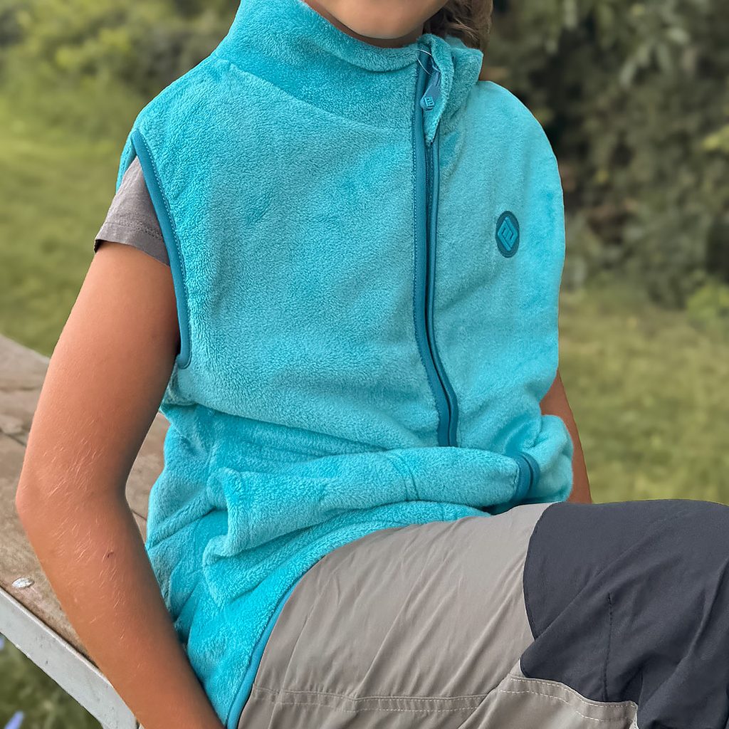 vesta dětská chlupatá se stojáčkem, Pidilidi, PD1140-15, v tyrkysové barvě.